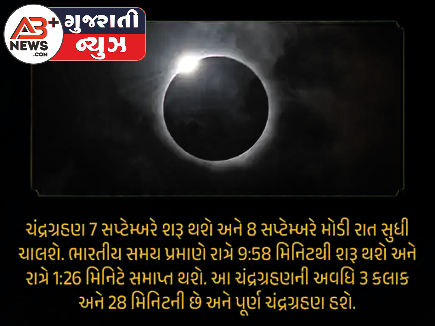 વર્ષ 2025નું બીજું અને છેલ્લું ચંદ્રગ્રહણ 7 સપ્ટેમ્બરનાં રોજ થવાનું છે. આ ચંદ્રગ્રહણ રાત્રે 9:58 વાગ્યે શરૂ થશે અને મધરાતે 1:26 વાગ્યે પૂર્ણ થશે. એટલે કે, આ ગ્રહણ લગભગ 3 કલાક 28 મિનિટ સુધી ચાલશે. આ ચંદ્રગ્રહણ કુંભ રાશિ તથા ગુરુના નક્ષત્ર પૂર્વાભાદ્રપદમાં લાગશે. જ્યોતિષ શાસ્ત્ર અનુસાર, આ સમયગાળો અત્યંત વિશેષ છે કારણ કે શનિદેવ વક્રી ગતિમાં છે. શનિની વક્રી ગતિ કેટલીક રાશિઓને અદભૂત સફળતા અપાવશે તો કેટલીક રાશિઓ માટે મુશ્કેલીનો સંકેત પણ આપશે.