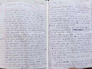મૃતક મહંત મહેન્દ્રભાઈએ આપઘાત કરતા પહેલાં એક સુસાઇડનોટ લખી હતી, જેમાં તેઓએ છેલ્લા ચાર વર્ષથી મંદિર બચાવવા માટેની લડતની વાત ઉલ્લેખી છે. સુસાઇડનોટમાં મહંતે જણાવ્યું હતું કે તેમનાં પોતાના નજીકના લોકો જ તેમની વિરુદ્ધ ઊભા થયા. તેઓએ લખ્યું કે, “હું ભીષ્મ પિતામહની જેમ લડ્યા વિના જ હાર સ્વીકારું છું.” મહંત મહેન્દ્રભાઈએ તેમના પુત્રને મંદિર બચાવવા માટે લડત ચાલુ રાખવા માટે કહ્યું.
