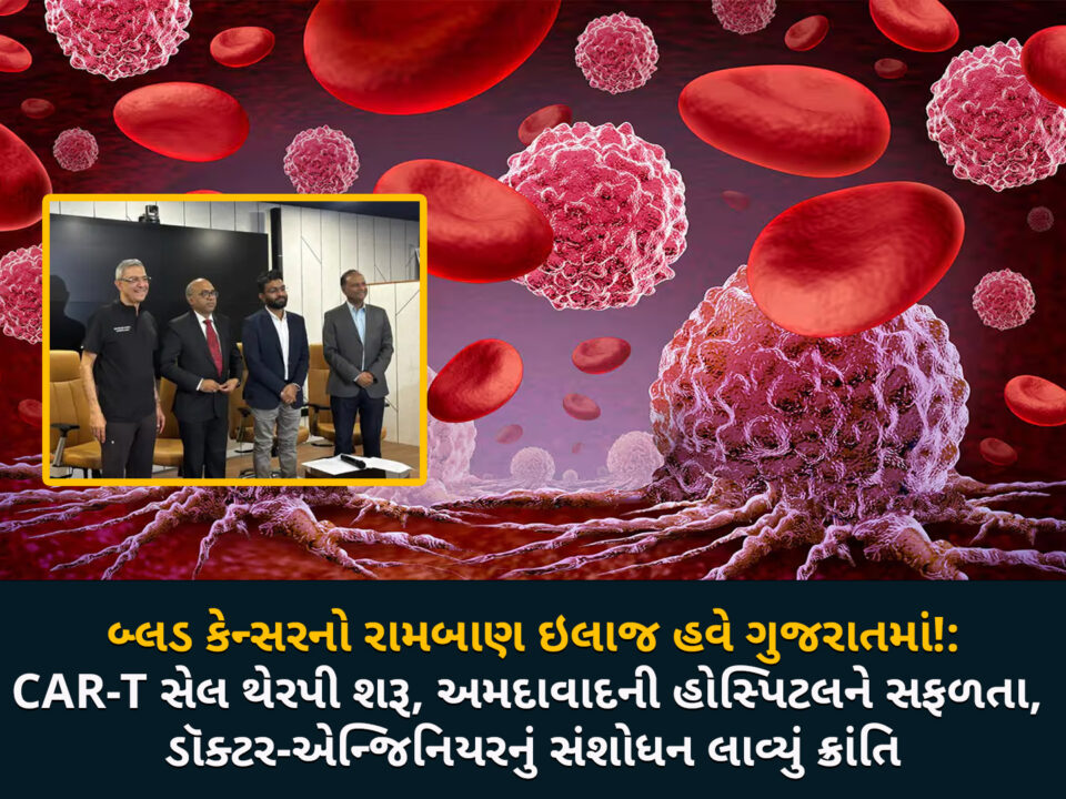 અમદાવાદના મેરિગો સિમ્સ હોસ્પિટલના ડૉક્ટર અને એન્જિનિયરોની ટીમે બ્લડ કેન્સર સામેની લડતમાં ઐતિહાસિક સફળતા મેળવી છે. હોસ્પિટલને CAR-T સેલ થેરેપીમાં મહત્વપૂર્ણ સિદ્ધિ પ્રાપ્ત થઈ છે, જે લ્યુકેમિયા, લિમ્ફોમા અને મલ્ટિપલ માયલોમા જેવા ગંભીર બ્લડ કેન્સરના દર્દીઓ માટે આશાનું કિરણ બની છે. વિદેશમાં 2થી 4 કરોડ રૂપિયામાં થતી આ અદ્યતન થેરેપી હવે ગુજરાતમાં માત્ર 20થી 30 લાખ રૂપિયામાં ઉપલબ્ધ બની છે.